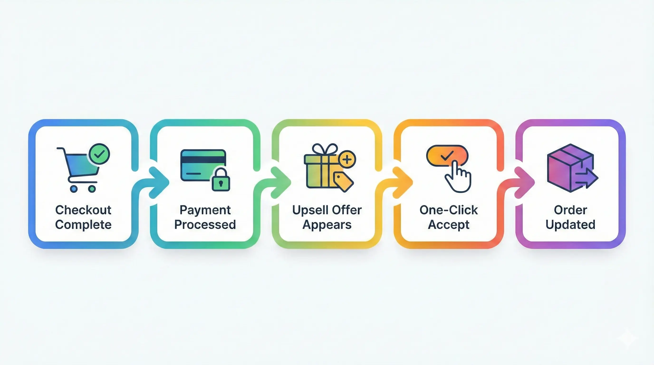 That’s why the one-click post-purchase upsell eliminates that friction. Because payment is already stored, the upsell feels like a frictionless checkout extension.